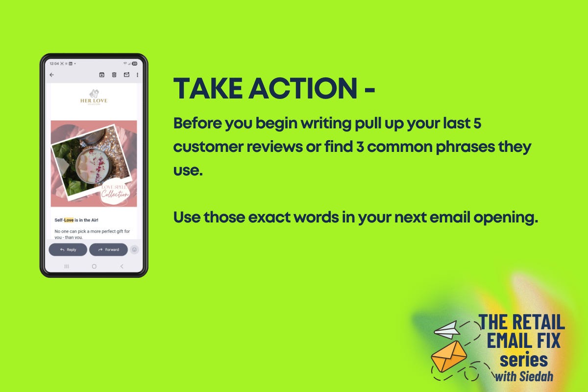 Next Tuesday, I’ll show you how to find the exact words your customers use—straight from your reviews and DMs—so you never stare at a blank email again.